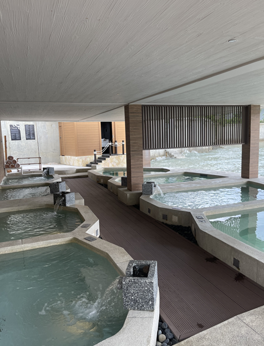 수영장 외의 시설로는 온센이 있어요. 36도부터 48도?까지 있지만 생각보다 물이 뜨겁진 않아요. 지지는 느낌보다는 따뜻하다의 느낌 정도의 온도에요. 제가 간 날은 바람이 불고 기온이 좀 낮았어서 온도가 더 뜨거웠으면 좋겠다고 생각했지만 더웠다면 힘들었을 것 같네요ㅎㅎㅎ 바다를 보면서 가만히 앉아있는 것도 괜찮더라구요. 한 번 경험해보기에는 괜찮았어요